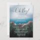 Montagnes couvertes de forêt surplombant l'invitation du baby shower de l'océan bleu profond. Belle peinture de nature rustique utilisant des verts, bleu et marron. Peut être utilisé pour un garçon ou changé pour dire Oh Baby pour une douche neutre.
