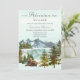 C'est un thème baby shower "Fille !". "Laissez l'aventure commencer !" est l'inspiration. Voici une forêt, une montagne, une aquarelle avec maman et bébé ours. Ce design présente des montagnes rustiques avec un lac réfléchissant devant, et des pins autour du lac. Ours adulte avec son petit devant.