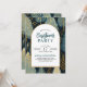 Invitation vos invités à célébrer la saison de Noël avec cette élégante invitation de fête de vacances avec typographie moderne, une arche blanche avec une bordure en or sur un arrière - plan des arbres de Noël de vacances et de la verdure avec des accents de feuille d'or.