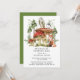 Enchanted forêt bois garçon 1er anniversaire invitation. Champignons géants magiques, animaux de la forêt, arbres, invitation à l'aquarelle. Vert solide sur le dos de l'invitation.