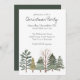 Cette invitation à une fête de Noël simple et élégante, mais festive, présente un design aquarelle cosy. Une image d'une forêt hivernale est placée en bas, avec divers arbres saupoudrés de neige.