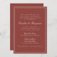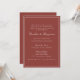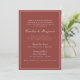 Un faire-part de mariage intemporel avec un riche arrière - plan rouge rouille avec une typographie classique serif et script pour un look raffiné et sophistiqué. Une fine bordure blanche apporte une touche d'élégance, ce qui en fait un endroit parfait pour les mariages modernes, rustiques ou d'automne. Idéal pour les couples à la recherche d'un design simple mais élégant de papeterie mariage qui donne le ton d'une fête chaleureuse et intime.