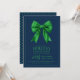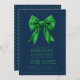 Invitation Formal Holiday Dinner Party Green Satin Bow Navy