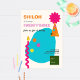 Un thème festif d'anniversaire avec des couleurs vives, des formes, des bougies et casquette de fête avec un design moderne abstrait.