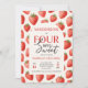 Fraise Four Ever Sweet 4th Birthday Party Invitation. Invitation à quatre ans - Fraise modifiable - Célébrez la 4e de votre petit avec une fête sucrée aux baies! Parfait pour un bain d'anniversaire amusant et fruité.