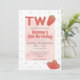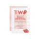 Carton d'invitation d'anniversaire sur le thème des fraises. Deux lettrages lumineux avec des fraises. Détail sucré à pois. Aquarelle rouge et rose. Parfait pour le deuxième 2ème 2 anniversaire de bébé ou de toddler. Texte moderne et amusant facile à éditer. S'intègre dans un thème de party tutti fruity / twotii fruity ou berry sweet. Trouvez des accessoires assortis dans la boutique Gemma Harlow Creations ou transférez le design sur vos produits préférés.