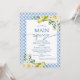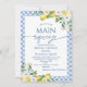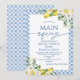 Frame Jaune Floral Lemon Thème nuptiale Invitation Elle a trouvé sa principale invitation à la douche nuptiale pressée avec quelques fleurs jaunes et blanches, des citrons et des arrangements de feuillage et une bordure en tuiles bleues méditerranéennes. Idéal pour une douche nuptiale de printemps ou d'été.
