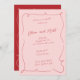 Invitation French Whimsy Script Wedding Invite Red Pink