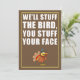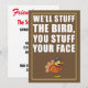 Nous allons farcir l'oiseau, vous farcissez votre visage Invitation Friendsgiving drôle avec un dindon de dessin animé sur fond marron. Une excellente invitation pour inviter vos amis à un festin Friendsgiving !