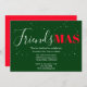 Une invitation de soirée Friendsmas à envoyer à vos amis avec un design vert, rouge et blanc.