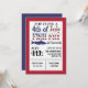 Rejoignez-nous pour une FRITURE de poisson du 4 Juillet ! Insérez votre heure et informations. Mots formatés avec le drapeau américain et silhouette de poisson-chat bleue assortie.