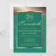 Luxueuse turquoise bleu et or motif frontière géométrique invitation anniversaire avec script moderne. Customisez seulement les détails à l'avant.