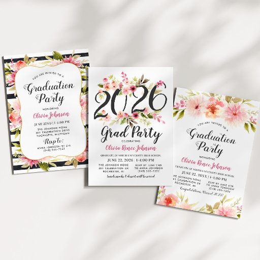 Watercolor Blush Floral Graduation PartyConçu par Kat Fusinski