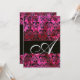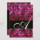 Invitation FUCHSIA BLACK SILK DAMASK MONOGRAM, Glace blanche