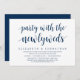 Moderne écriture en thème bleu marine classe, carte d'invitation de fuite de mariage (Célébration de bonheur éternel). C'est parfait pour votre dîner de mariage intime décontracté au bord du lac, dansant et faisant la fête.