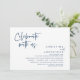 Carte d'invitation de fuite de mariage à thème écriture moderne bleu marine (célébrez avec nous). Elle est parfaite pour votre réception de mariage après fuite / fête de célébration après mariage. Ajoutez vos détails dans une police / lettrage noir assorti.