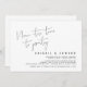 C'est la carte d'invitation de fête de fuite de mariage, avec un design de script noir minimaliste / minimalisme (Maintenant il est temps de faire la fête Invitation)