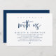 Invitation de mariage moderne avec écriture bleue marine pour une fuite de mariage (Célébrez avec nous). Elle est parfaite pour votre réception de mariage après une fuite / fête de célébration après le mariage. Ajoutez vos détails avec la même police / lettrage.