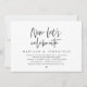 Carte d'invitation de mariage sur le thème du script noir moderne, (Célébrons maintenant). Elle est parfaite pour votre réception de mariage / fête de célébration après le mariage. Ajoutez vos coordonnées dans la même police / lettrage noir.