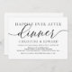 Carte d'invitation de dîner de noces en fuite moderne romantique minimaliste avec calligraphie simple (Dîner de bonheur éternel). Elle est parfaite pour votre annonce de fuite de noces et célébration de fête, après votre meilleur jour. Ajoutez vos détails dans une police / lettrage noir assorti.