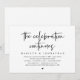 Carte d'invitation de fuite de noces sur le thème du script noir moderne (la célébration continue). Elle est parfaite pour votre réception de fuite de noces / fête de célébration après le mariage. Ajoutez vos détails dans la même police / lettrage noir.