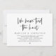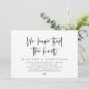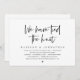Carte d'invitation de fuite de noces sur le thème du script noir moderne (Nous avons noué le nœud). Elle est parfaite pour votre réception de fuite de noces / fête de célébration post-mariage. Ajoutez vos détails dans la même police / lettrage noir.