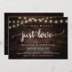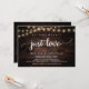 Belle fête de célébration d'amour sans prétention, Carte d'annonce / invitation de fuite en mariage, dans une conception de lumières de guirlande en bois de ferme rustique. C'est parfait pour votre réception de mariage et votre fête de célébration post-mariage. Ajoutez vos détails dans la même police / lettrage.