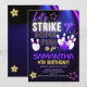 A lovely design to celebrate your little bowler! Featuring images of bowling pins and a bowling ball in bright neon and pink colors, this design is ideal for girls' birthdays of all ages. Get yours now!