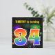 Ce design amusant et dynamique d'invitation de fête d'anniversaire comprend un feu d'artifice coloré inspiré motif, ainsi que le numéro "34" avec un spectre multicolore inspiré arc-en-ciel ou motif dégradé. Le nom sur le devant peut être personnalisé. Le verso présente des informations personnalisables sur la fête. Des invitations à des fêtes d’anniversaire comme celle-ci peuvent être envoyées à des invités invitations à une fête d’anniversaire organisée pour célébrer le trente-quatrième anniversaire de quelqu’un. [~Z0000337]