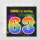 Ce design amusant et dynamique d'invitation à la fête d'anniversaire comprend un motif coloré inspiré par des feux d'artifice festifs éclatants, ainsi que le numéro "63" ayant un arc-en-ciel multicolore comme spectre ou motif dégradé. Le nom sur le devant peut être customisé. Le verso présente des détails personnalisables sur la fête. Des invitations à des fêtes d’anniversaire comme celle-ci pourraient être envoyées à des invités potentiels pour une fête d’anniversaire organisée pour célébrer le soixante-troisième anniversaire de quelqu’un. [~Z0000337]