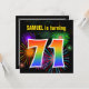 Ce design amusant et dynamique d'invitation à la fête d'anniversaire comprend un motif coloré inspiré par des feux d'artifice festifs éclatants, ainsi que le numéro "71" ayant un arc-en-ciel multicolore comme spectre ou motif dégradé. Le nom sur le devant peut être customisé. Le verso présente des détails personnalisables sur la fête. Des invitations à des fêtes d’anniversaire comme celle-ci pourraient être envoyées à des invités potentiels pour une fête d’anniversaire organisée pour célébrer le soixante-et-onzième anniversaire de quelqu’un. [~Z0000337]