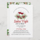 Elegant and festive Christmas party invitation for a Ladies Night sip and swap gifts or ornaments with elegant holly and poinsettia floral design. Includes red wine graphics for a fun cocktail party with the girls!