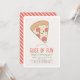 L'invitation pour l'anniversaire de ce mignon et kawaii "Slice of Fun" comprend une tranche de pizza Pepperoni avec un joli visage souriant sur un arrière - plan beige. L'envers est orné d'un arrière - plan rouge aux rayures diagonales blanches. Personnalisez-le selon vos besoins. Vous pouvez trouver des produits correspondants dans mon magasin.