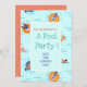 Une invitation à la fête moderne et amusante pour une fête de billard avec une hanche rétro, un graphisme cool de nageurs et de jouets de billard aux couleurs vives et vives de l'orange et du bleu. Le texte de cette invitation est entièrement personnalisable pour inclure vos propres détails personnels.