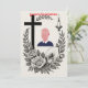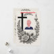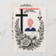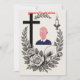 Élégante invitation funéraire en noir et blanc sans texte représentant des symboles chrétiens comme la croix, la bougie et la couronne florale — idéale pour les services commémoratifs traditionnels.