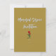 Cette magnifique invitation funéraire donne un ton solennel mais élégant au service commémoratif, avec des roses rouges foncées qui symbolisent l'amour et le souvenir profond. Les riches bordures dorées encadrent gracieusement l'invitation et l'image de votre être aimé, apportant une touche de luxe et de révérence. La combinaison de roses rouges profondes et d'accents dorés assure un hommage sincère, offrant un moyen significatif aux amis et à la famille invitations d'honorer la vie d'un être cher. Cette carte d'invitation est disponible sur différents formats pour la personnalisation. Il est entièrement personnalisable afin que vous puissiez inclure votre propre image précieuse de votre être cher, les détails essentiels du service et un message personnalisé. Conçu pour honorer la vie et l'héritage de votre être aimé, cette carte donne un ton compatissant et significatif pour le rassemblement de votre famille et de vos amis.