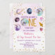 Invitation Galaxie de l'espace rose Premier anniversaire
