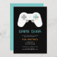 Invitation à thème de jeu amusant pour les enterrements de vie de garçon ou les week-ends d'enterrement de vie de garçon avec une manette de jeu avec "game over" et les détails de votre fête dans un lettrage numérique rétro.