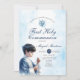 Invitation Garçon de la 1ère communion bleue priant Croix d'argent Fleurs bleues Christening Saint-Esprit