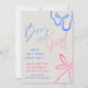 Design moderne rose et bleu ruban, avec la question traditionnelle : Garçon ou Fille? Petit coeur blanc doux et typographie de script.