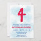 Enfants de 4e anniversaire garçon bleu fête de 4e anniversaire invitation pour un garçon de 4 ans avec des polices amusantes écriture et amusant numéro d'aquarelle.