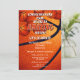 Cette invitation à la fête sur le thème du basket-ball pour une fête d'équipe comprend un groupe de boules de basket qui accentue le bord supérieur sur le devant et qui recouvre le dos de l'invitation - l'image d'un ballon de basket abstrait surdimensionné fournit le décor pour les détails de la fête de votre équipe sur le devant de la carte - par katz_d_zynes