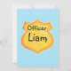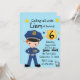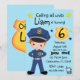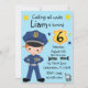 Appelez toutes les unités pour une fête d'anniversaire amusante et adorable du bureau de police ! Un arrière - plan bleu clair avec un petit garçon en uniforme de police.
