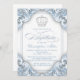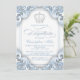 Invitation au baptême Prince avec belle couronne de diamant et élégant script sur un joli bébé arrière - plan tourbillon bleu et blanc. Cette élégante invitation au baptême de prince bleu est facilement customisée pour votre événement en ajoutant simplement vos détails dans le style et la couleur de police, et le libellé de votre choix.