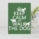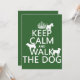 C'est l'affiche classique de guerre "gardent le calme et continuent" reformulé "gardent le calme et marchent le chien". Il y a des silhouettes des chiens se tenant et se reposant sur et autour des mots. La conception fait de grands présents ou cadeaux pour des propriétaires de chien/amants, ou pendant qu'un remerciement vous des établissements/vétérinaires/délivrance centre et marcheurs de chien.