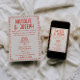 Ce faire-part de mariage est parfait pour votre mariage, si vous recherchez une invitation élégante unique et facile à éditer.Une élégante crème minimaliste simple et élégante invitation modèle mariage rouge. Ce qui est fait d'arrière - plan crème. Et les prénoms de mariée et de mariée écrits à la main rouge. Avec un gâteau mariage dessiné à la main. Tout à l'intérieur d'un cadre à main ondulée. et des informations modifiables en essayant le noeud disant sur le dos avec photo personnalisable sur le dos. Abordable et il est aussi numérique électronique e-invitation si vous voulez l'envoyer par texte ou e-mail. Toutes les informations sont personnalisables en cliquant sur le bouton personnaliser. Alors attrapez-le et faites-le vous pour que vous fassiez de vous des invitations engagés et enthousiasmés.