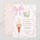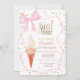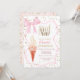 Cette première invitation d'anniversaire avec glace, noeud rose et cadre diamants est parfaite pour votre petit sauvageon !