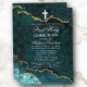 Aquarelle moderne élégante Turquoise et or Marbre Agate Géode Première Sainte Communion Invitation
