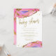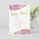 Ces invitations modernes et élégantes à la douche pour bébés sont dotées de pierres géantes roses et bleues à l'aquarelle, avec des scripts et accents manuscrits faux or.