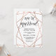 Ces invitations ultra-stylées et élégantes "nous sommes mariés" présentent un design géométrique en faux or rose sur un fond blanc impeccable, et comprennent une typographie calligraphique noire moderne. La façon parfaite d'inviter amis et famille à une cérémonie ou réception après le mariage !